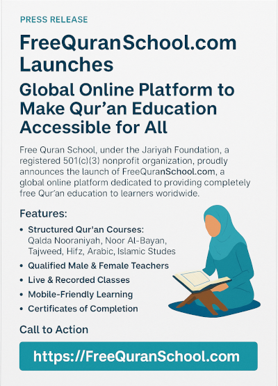 FreeQuranSchool.com Launches Global Online Platform to Make Qur’an Education Accessible for All November 27, 2025, Free Quran School is pleased to announce the launch of FreeQuranSchool.com, a comprehensive online learning…[...]